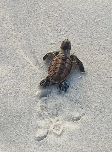 Only one in ten thousand turtles will survive to reach maturity at twenty years of age, at which point the females return to the same beach to lay their eggs.